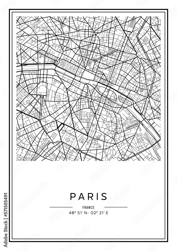 Paris City Map, Paris France Wall Art, La France Map Arts, France