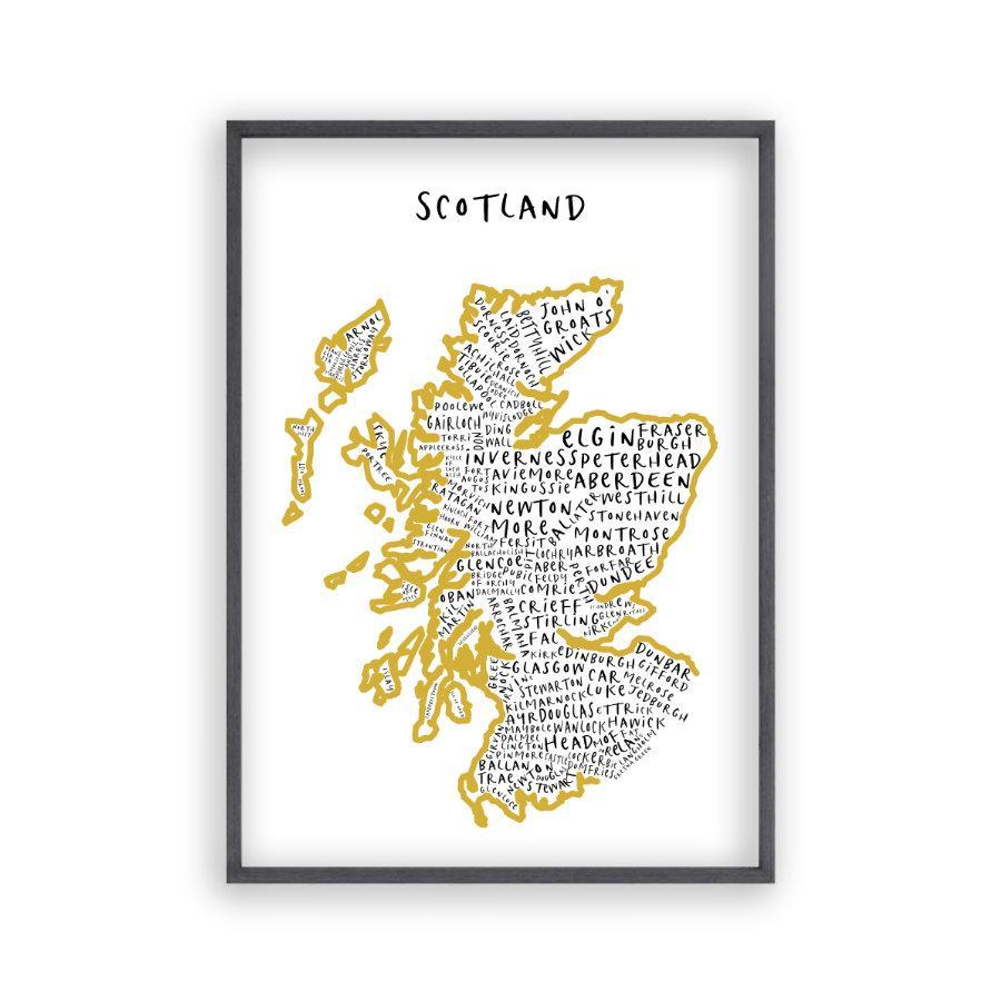 Scotland Map Print / Scotland Illustration Wall Art / Map A3 Print