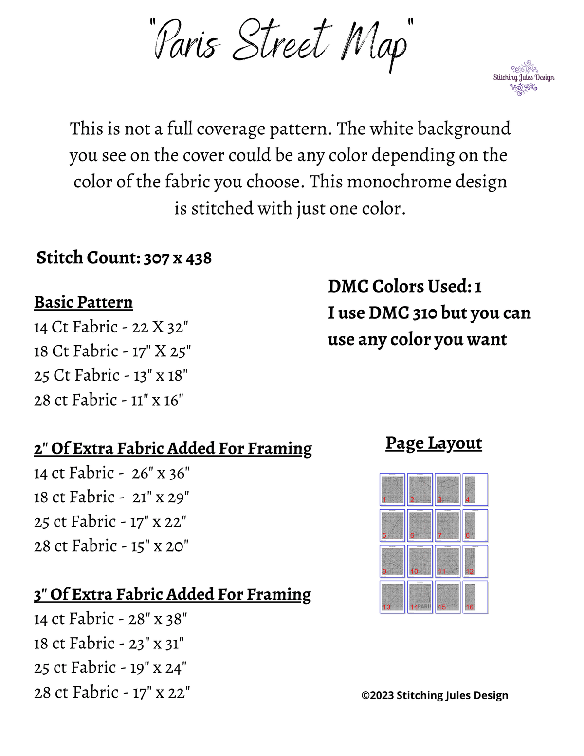 Paris Street Map Cross Stitch Pattern | City Map Cross Stitch